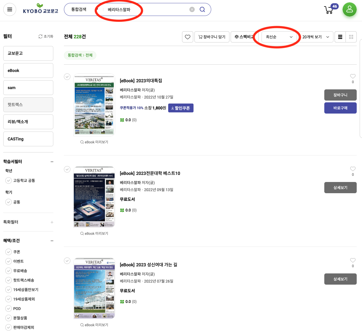 - 교보문고 홈페이지에 로그인 해서 "베리타스알파"로 검색합니다.
