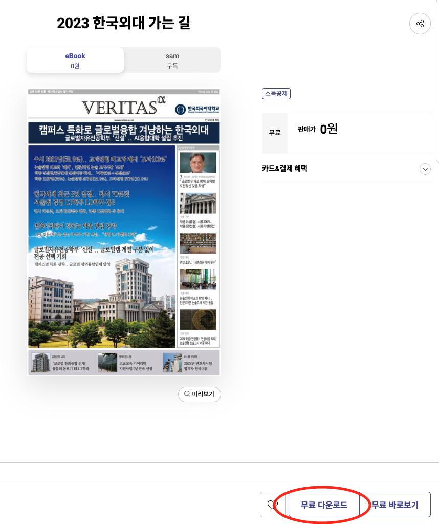 - 웹에서 바로 보려면 "무료 바로보기"를 선택,